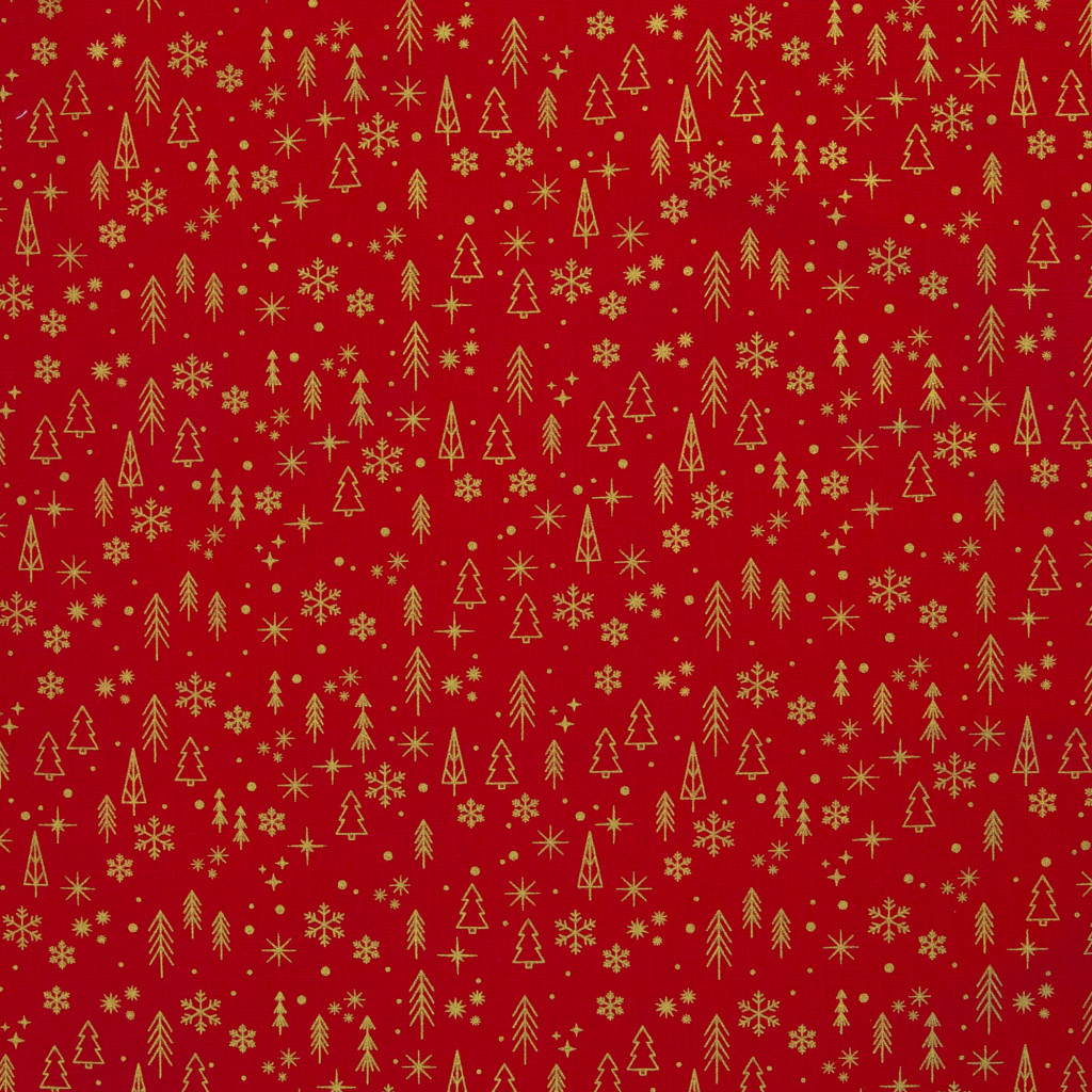 Karácsonyi pamutvászon – fólia nyomott, csillogós mintával