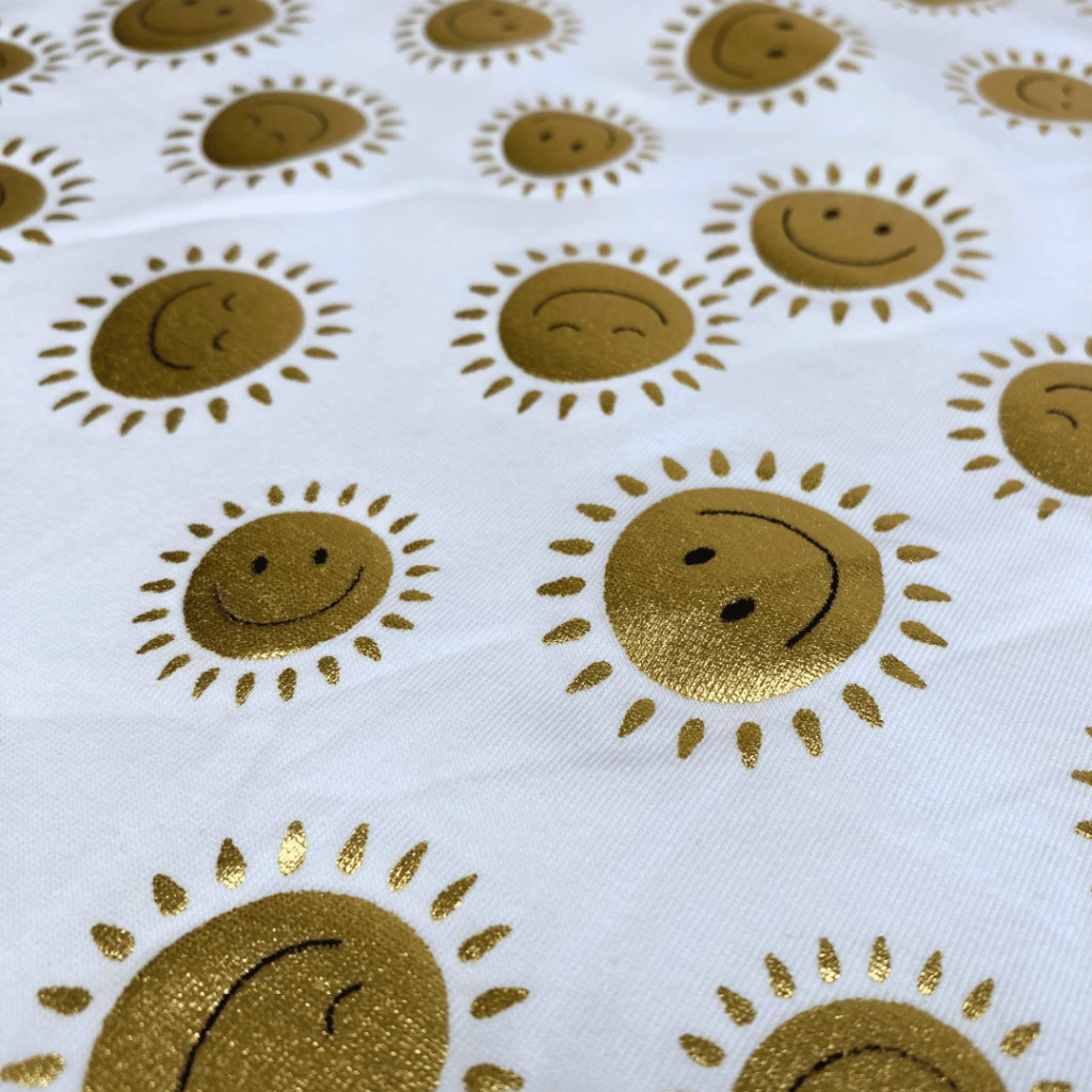 Pamut jersey (Fólianyomott), Napocska, Fehér
