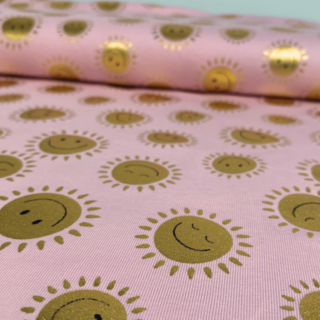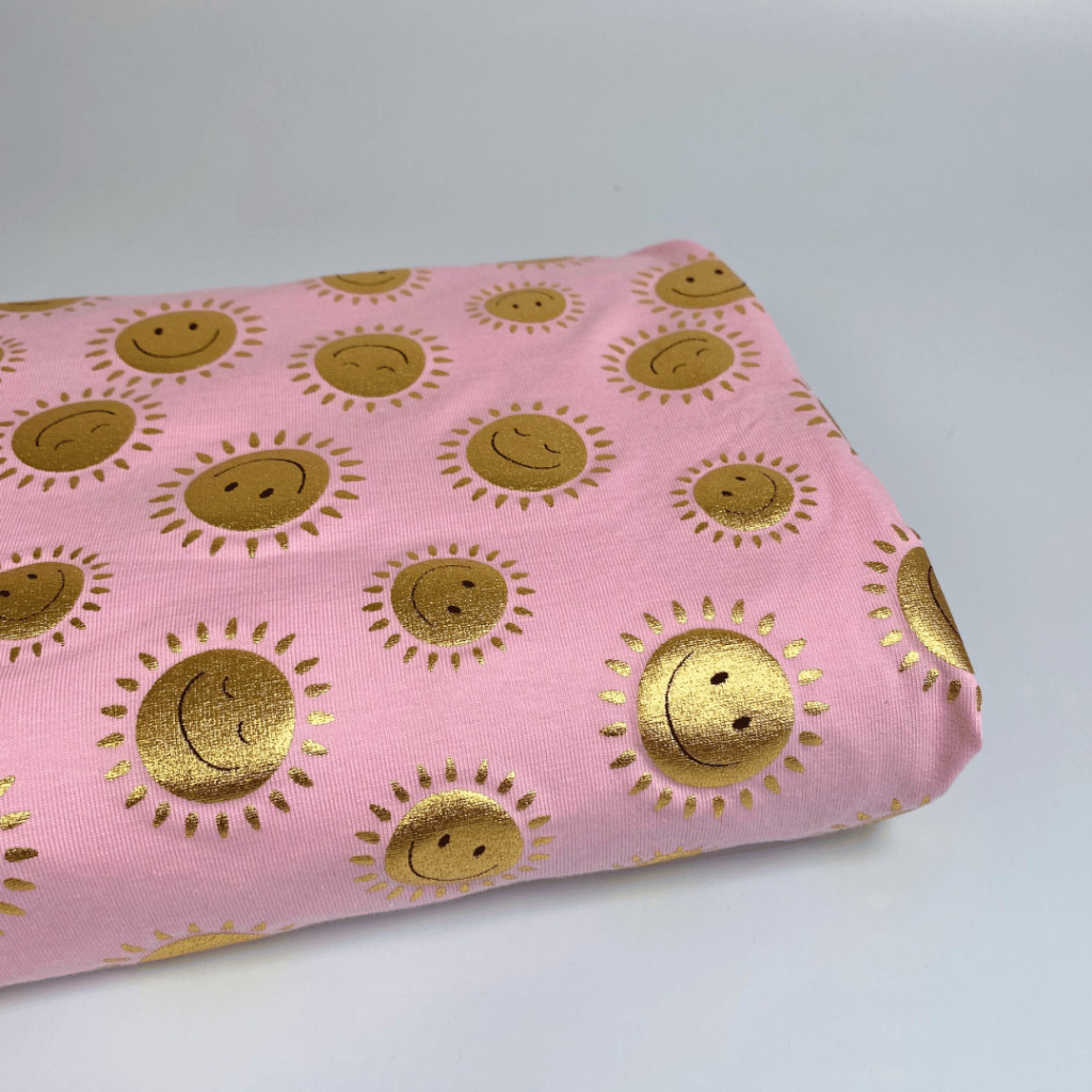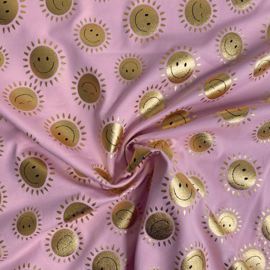 Pamut jersey (Fólianyomott), Napocska, Rózsaszín