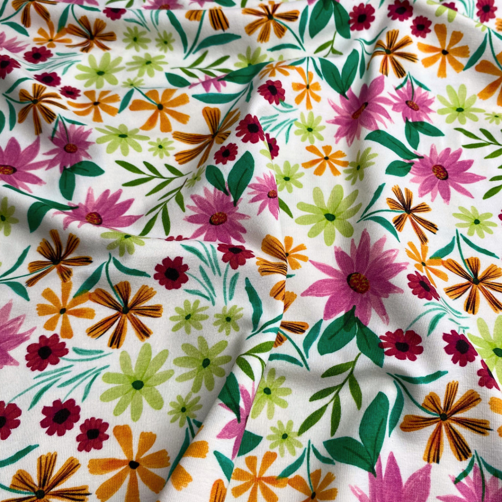 Pamut jersey, Virágok, Ekrü
