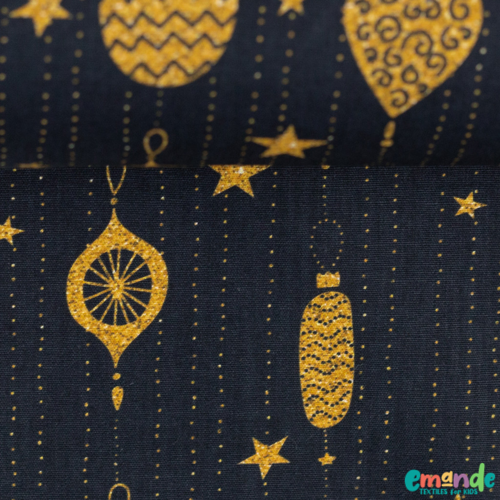 Pamutvászon,  Karácsony, Díszek, Fekete