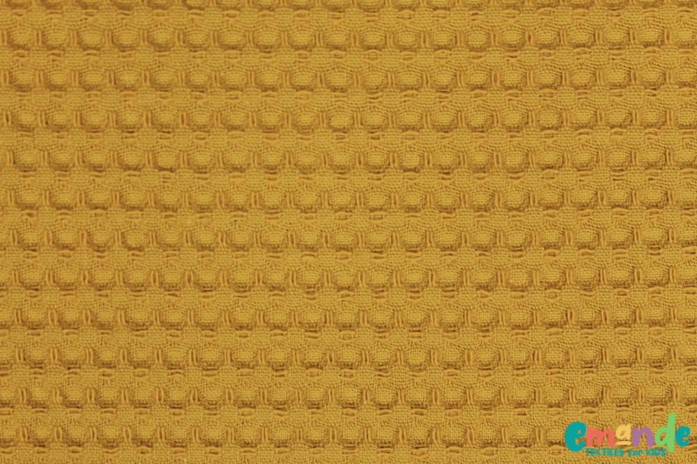 A waffle anyag a nevét a waffle-ről, vagyis a gofriról kapta, mert a szövet négyzethálós jellege miatt a gofrira hasonlít. Magyarul szokták darázsszövetnek is hívni, mert ránézésre a darázsfészekre is hasonlít. 100% pamut, rendkívül jó nedvszívó képessége van, ezért szokták törülközőnek is használni. Gyerekeknek kifejezetten jópofa kifogót lehet belőle készíteni. Pamutvászonnal kombinálva kellemes tapintású nyári takarót is varrhatunk, és nagyon népszerű mostanában babafészekhez is felhasználni. Ez a prémium minőségű anyag elérhető kétféle kivitelben – így pontosan azt választhatod, ami a projektedhez a legjobban illik: