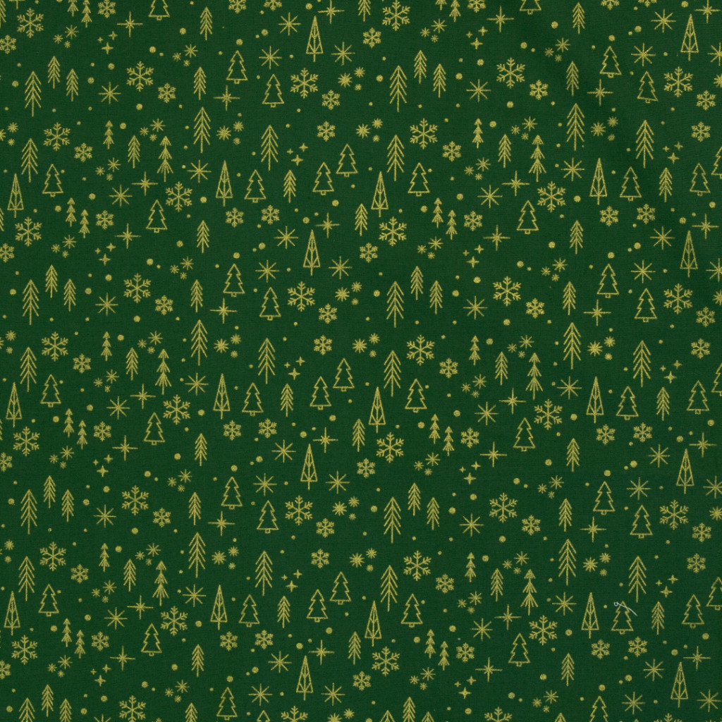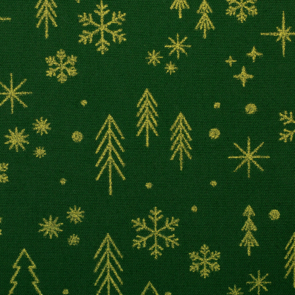 Karácsonyi pamutvászon, Fenyőfa, Sötétzöld