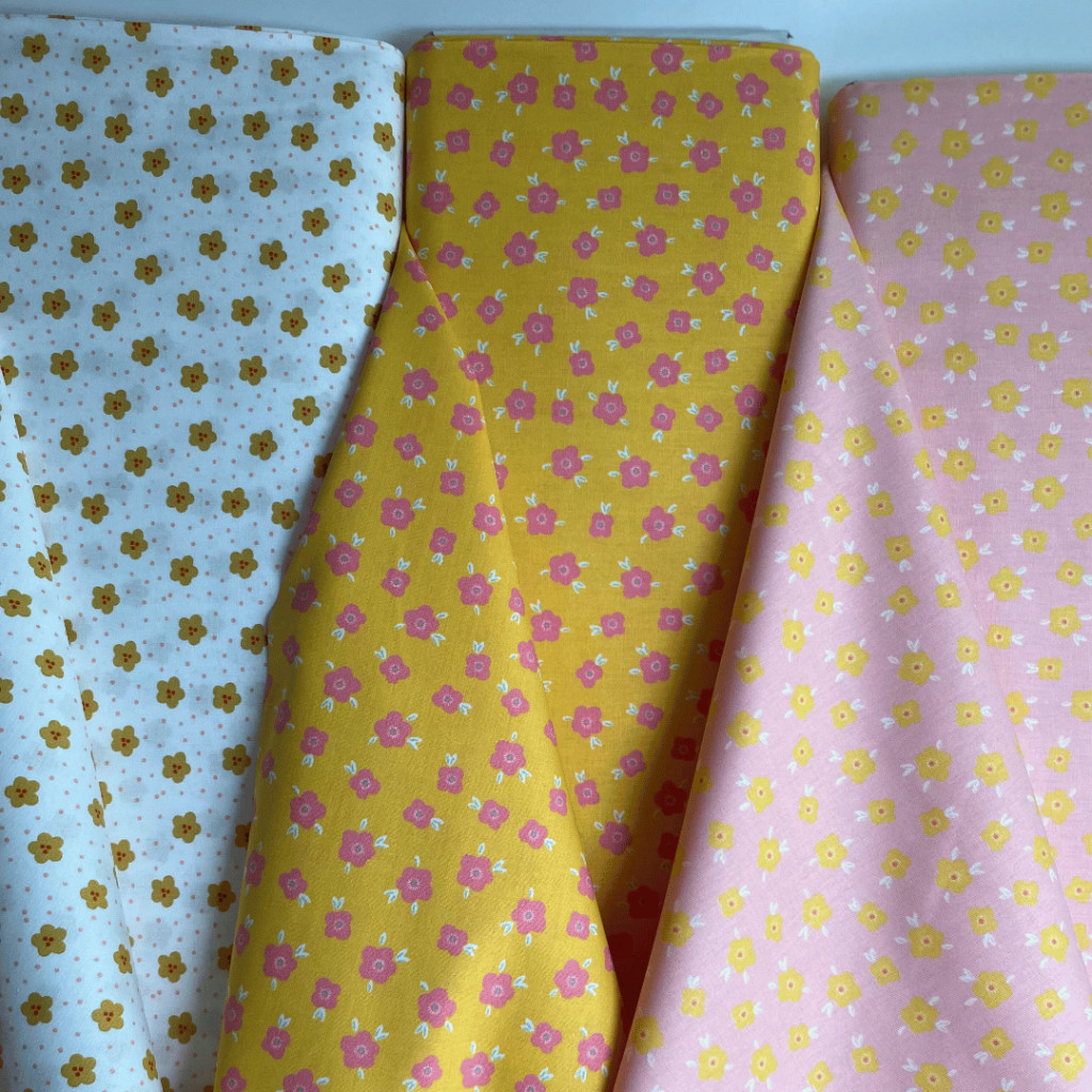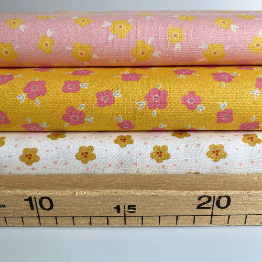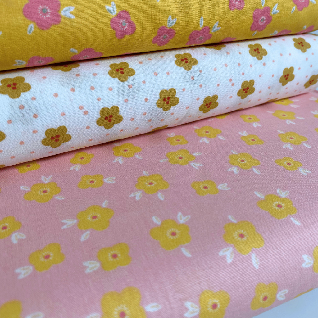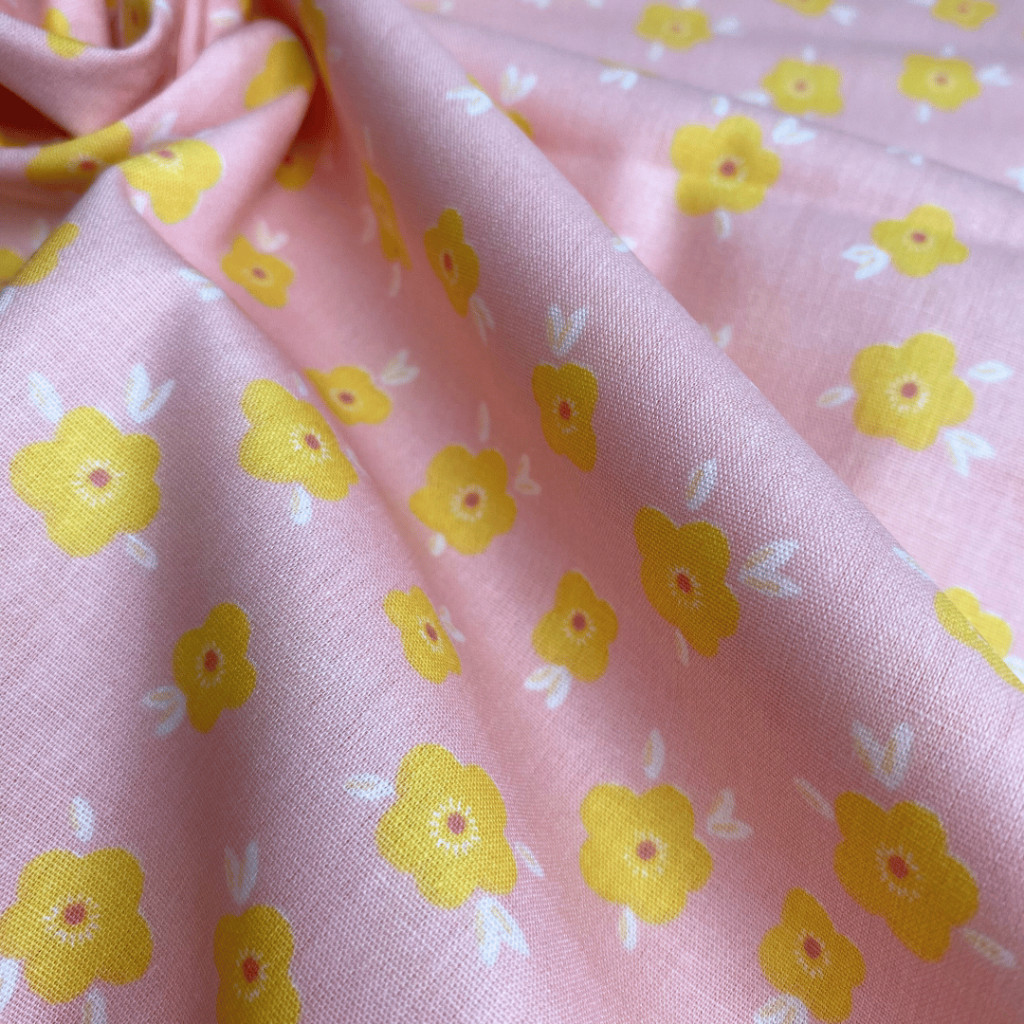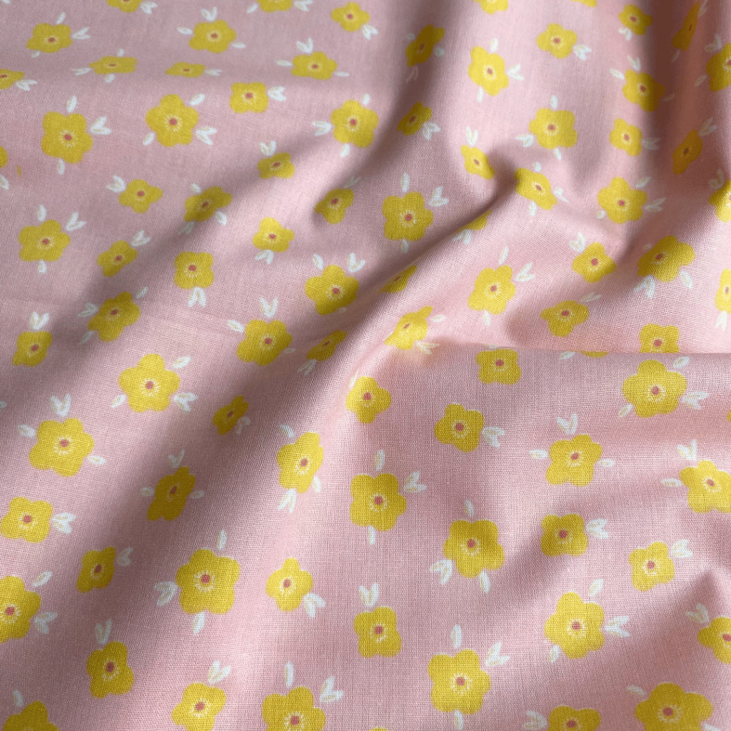 Pamutvászon, Sárga virágok Világos, rózsaszín